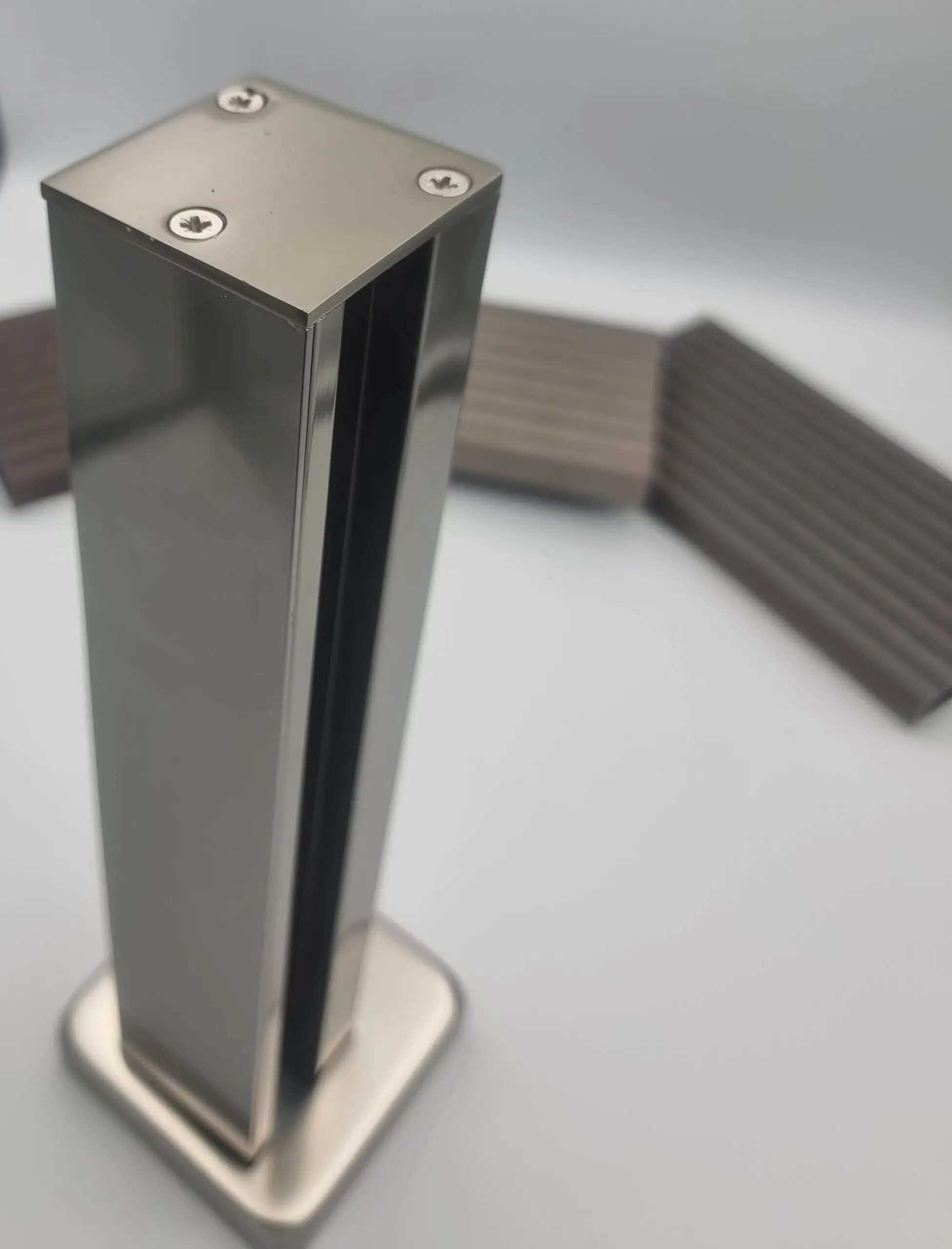 Η κολώνα ανοδιωμένου αλουμινίου 50×47 τύπου inox με κρυφή στήριξη σανίδων ντεκ αποτελεί ιδανική λύση για σύγχρονες κατασκευές ντεκ περιφράξης WPC, όπου απαιτείται ανθεκτικότητα, σταθερότητα και υψηλή αισθητική.